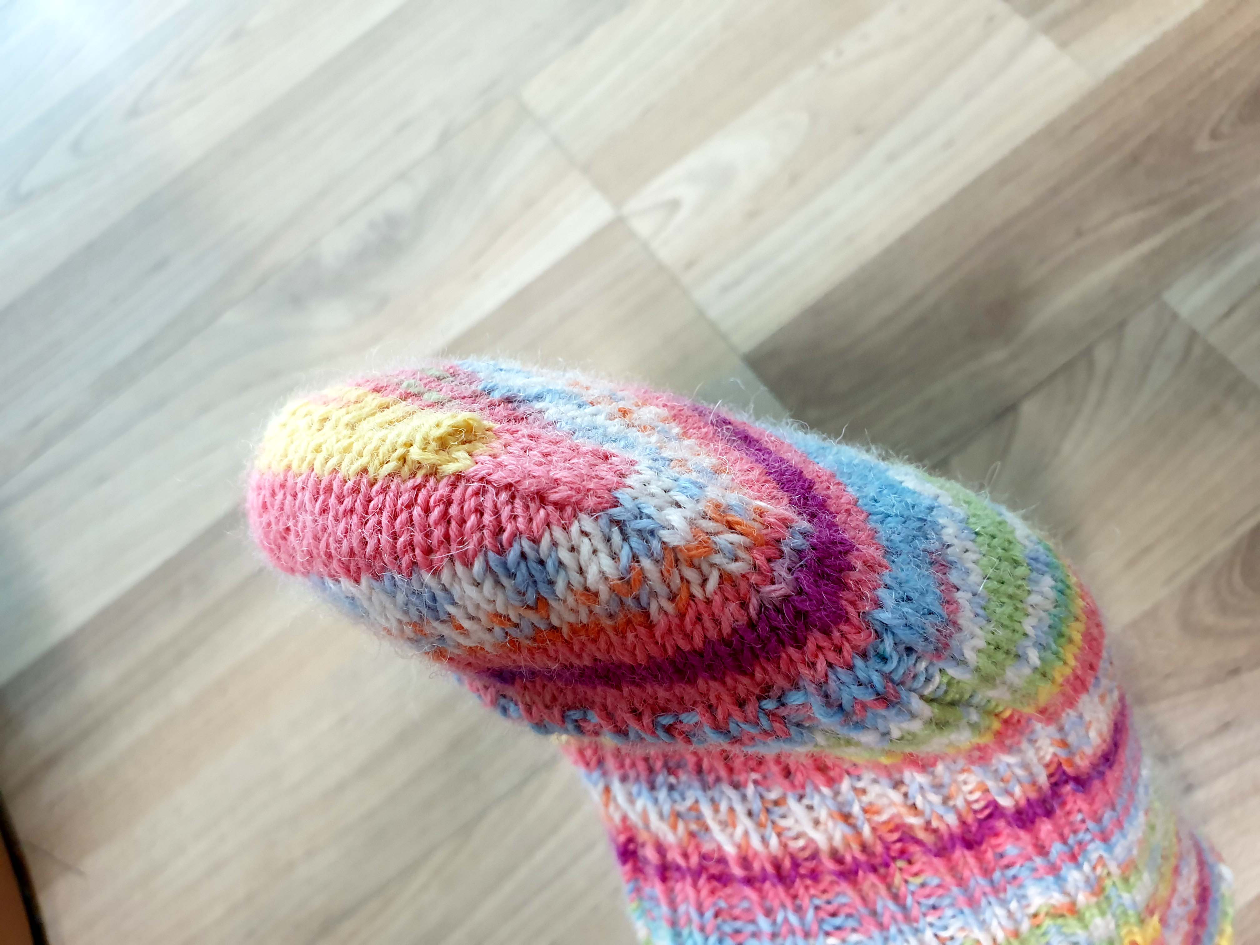 2.5mm 줄바늘 사용했구요. 시작코는 72코로 발목부터 떠 내려가는 탑다운 양말입니다.