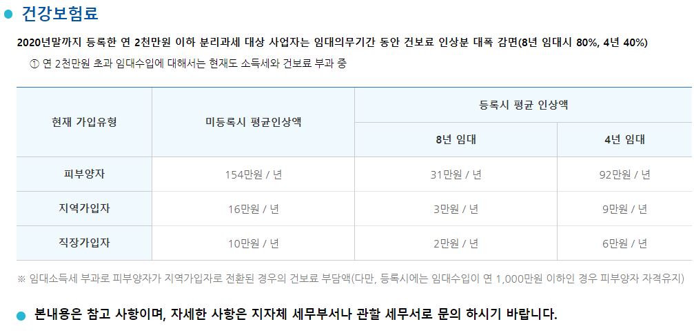 ++ 2020년10월 추가 : 주택임대사업자 건강보험료 혜택이 없어졌습니다. 혜택이 없어지기만 한 게 아니구요.