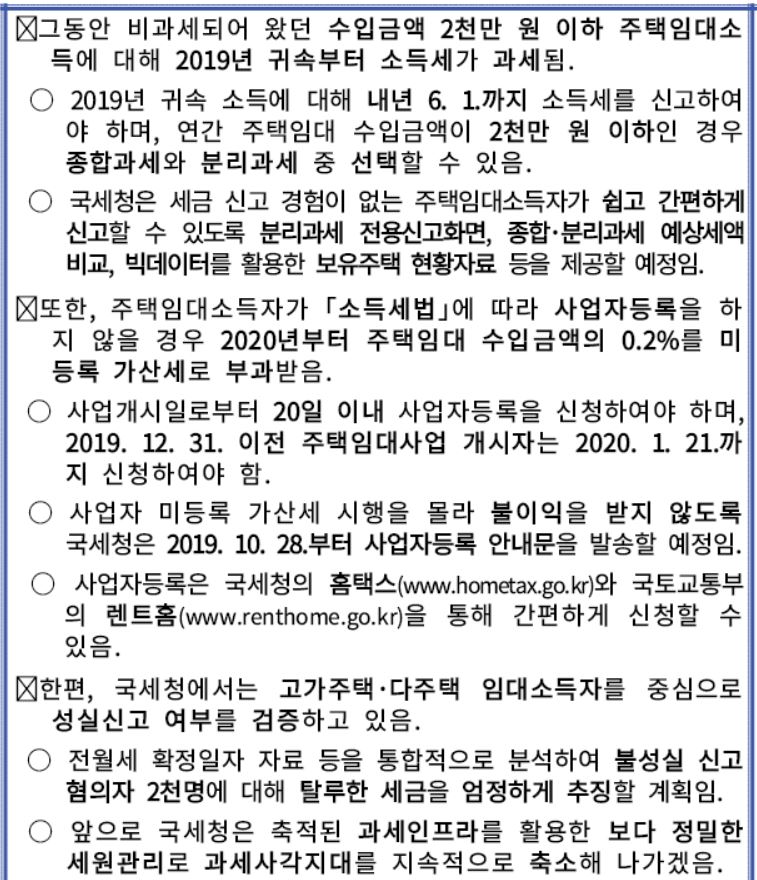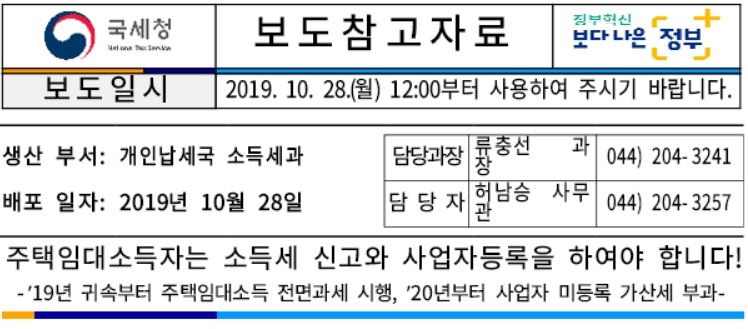 위의 화일은 주택임대소득 과세 관련한 국세청 보도자료 입니다.