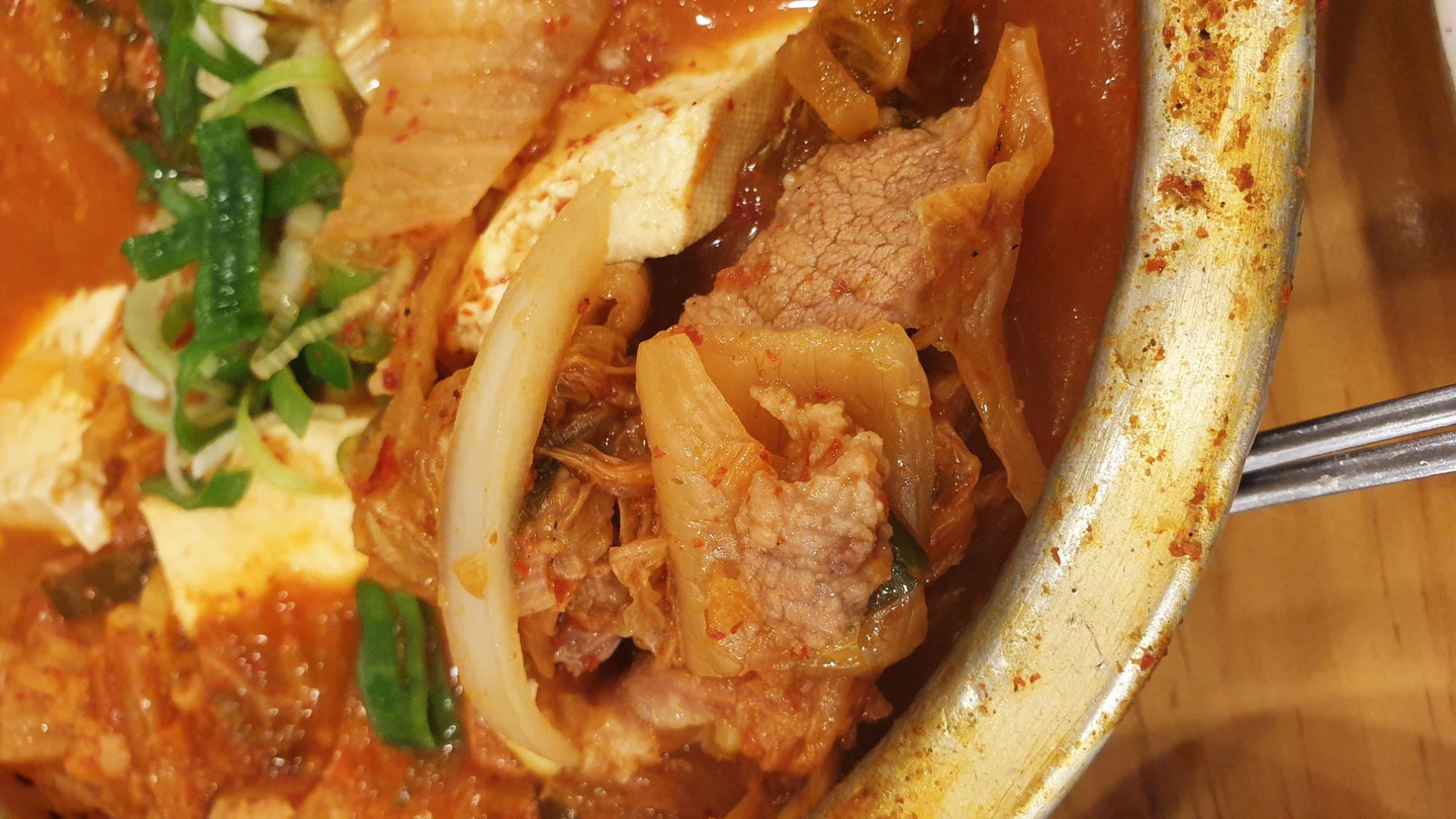 약간 과장하면 숟가락으로 찌개 국물을 뜰 때마다 건져질 정도로... 고기가 많구요.