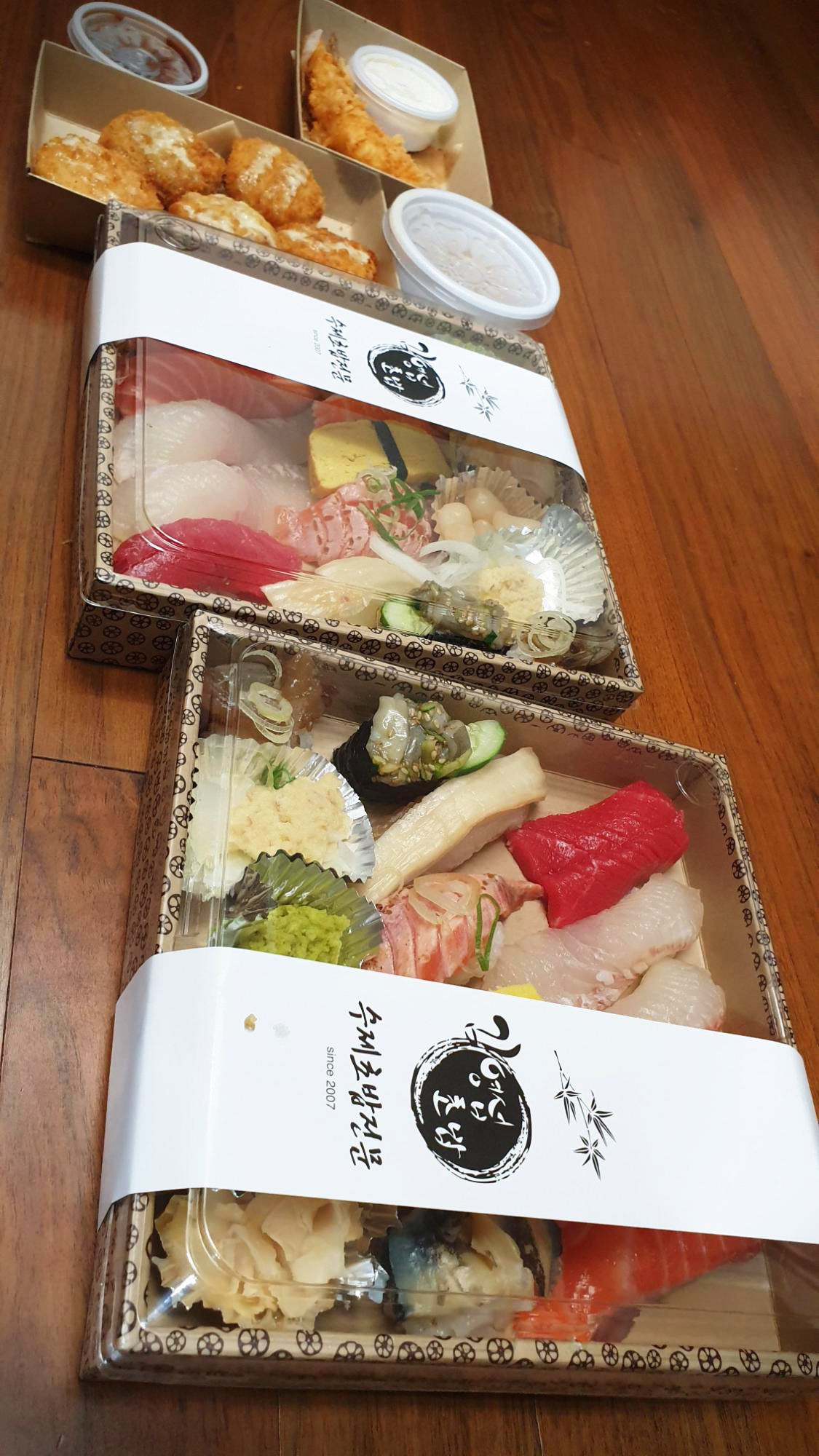 퇴근 길에 남편이 사온 상암동 김영섭초밥의 달인 세트와 고로케.