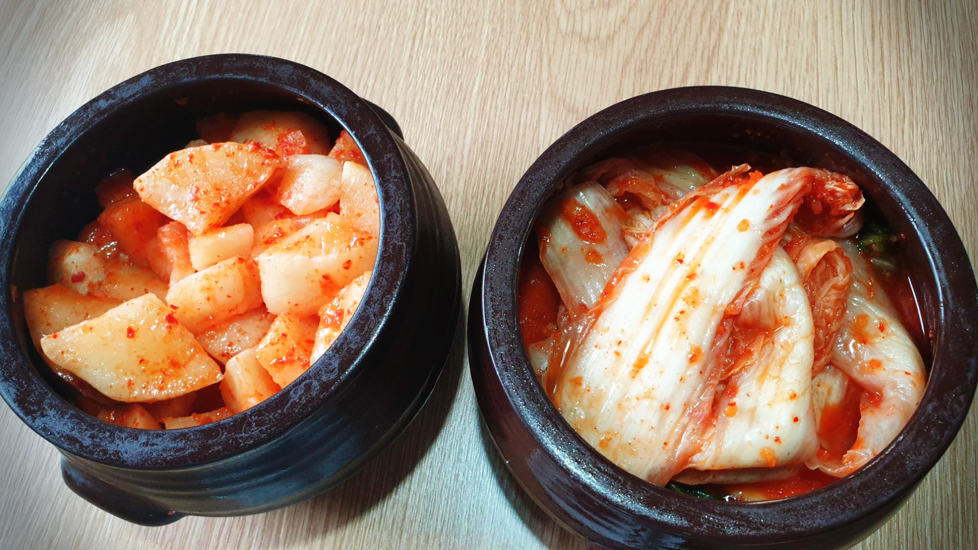 깍뚜기, 김치도 잘 어울리고, 양파랑 고추는 쌈장에 찍어 먹는 것도 좋아요.