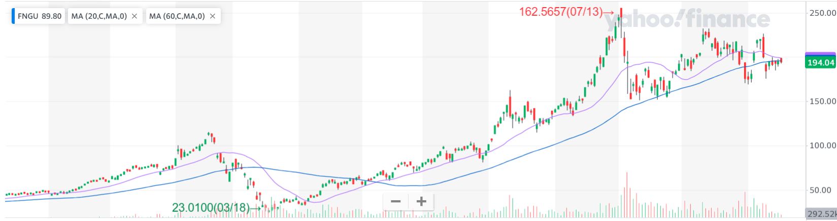마이크로섹터즈 FANG + 지수 3x 레버리지 ETN은 미국에 설립된 상장지수 증권입니다. FANG+지수를 일일 복리 3배(+300%) 레버리지 기준으로 추적합니다. (오를 때도 3배, 내릴 때도 3배!!)