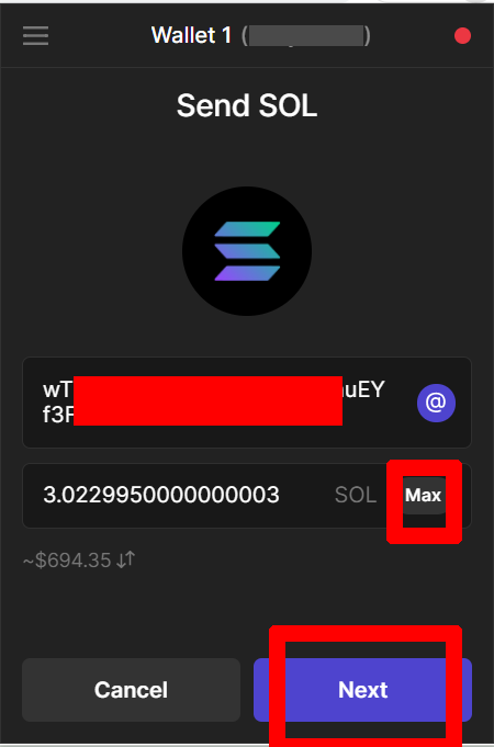 4. 업비트의 솔라나 입금주소를 붙여넣기하고, 출금할 솔라나 수량을 입력하세요.