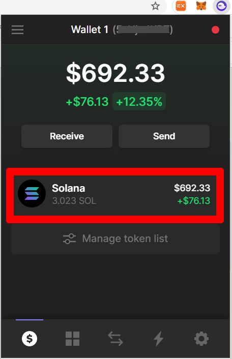 송금할 코인을(저는 솔라나) 클릭합니다.