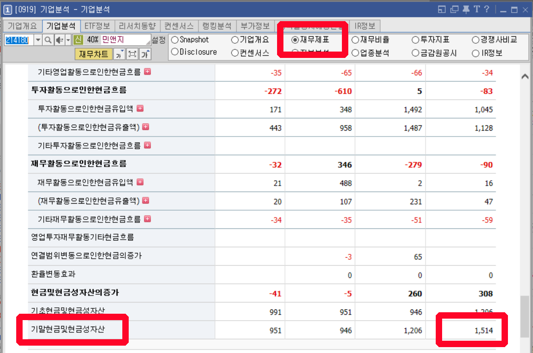 현금성 자산 : 1,514억원
