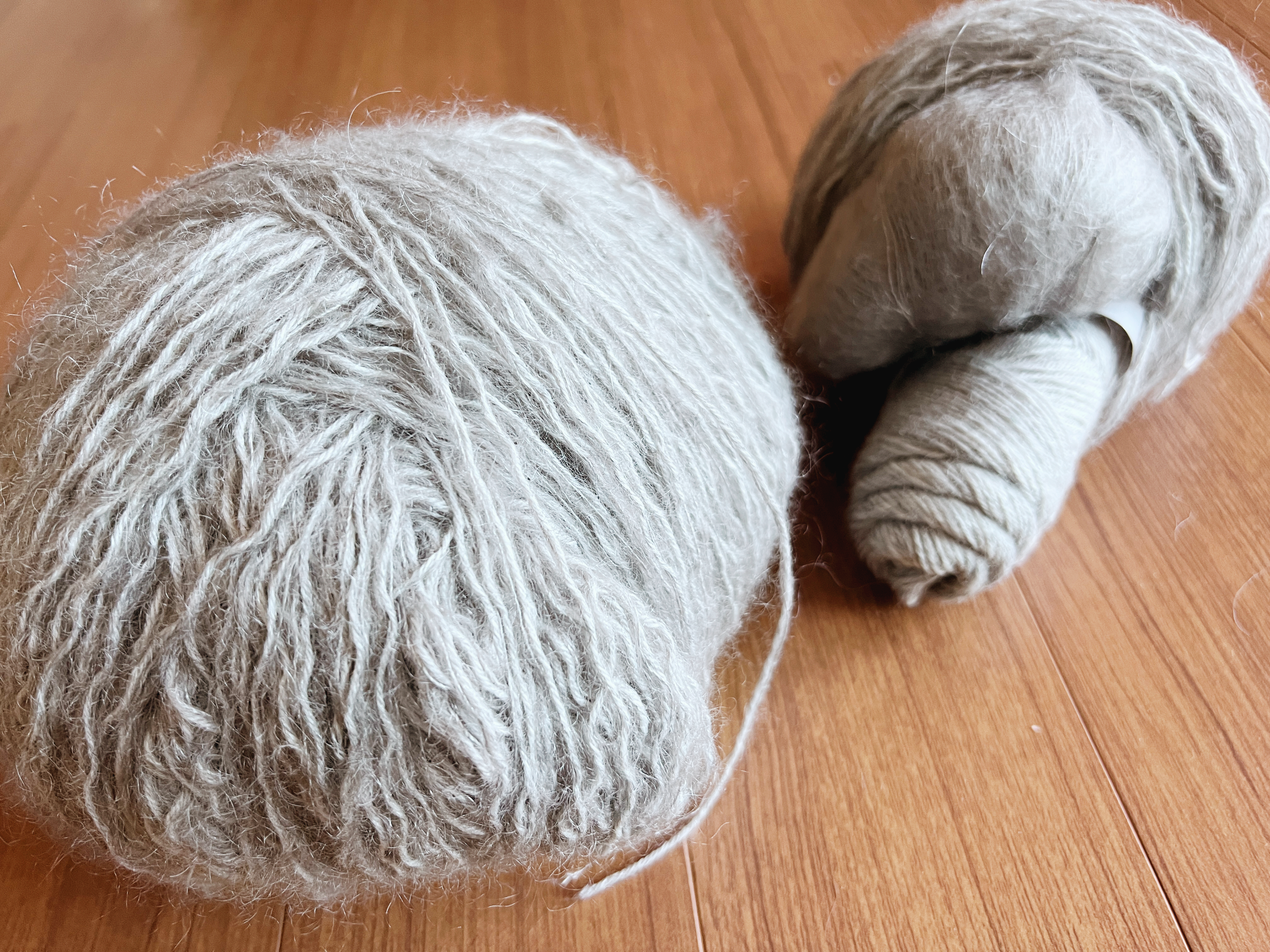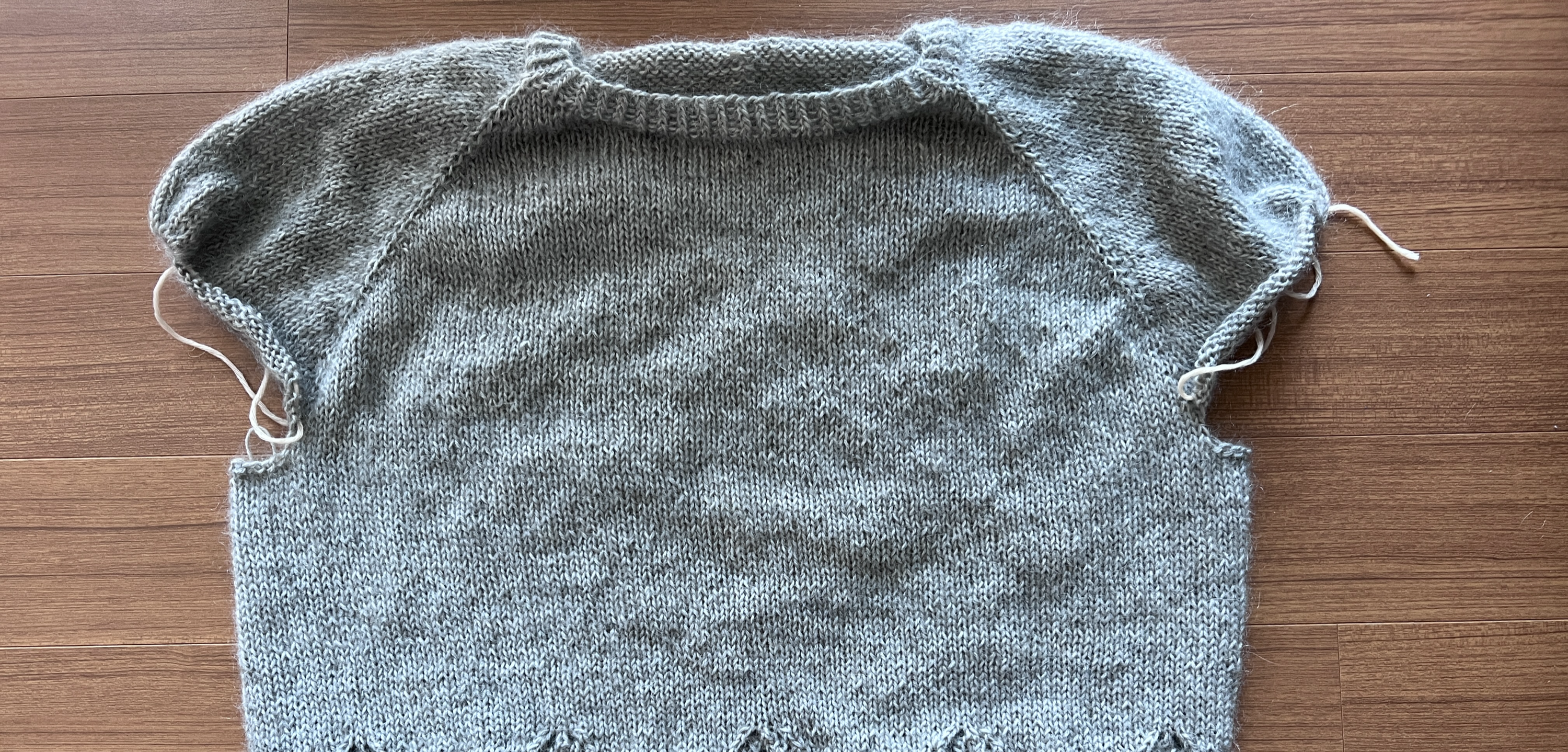 로완의 키드실크 헤이즈와 랑의 자울을 합사해서 뜬 탑다운 스웨터...