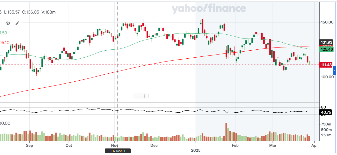 수요일에 엔비디아 주식은 113.76달러로 마감했고, 50일 이동평균선이 200일 이동평균선보다 낮은 상태로 데드크로스를 맞았다.