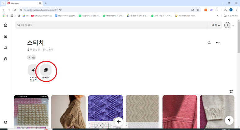 보드이름 아래에 [정리하기] 클릭합니다.