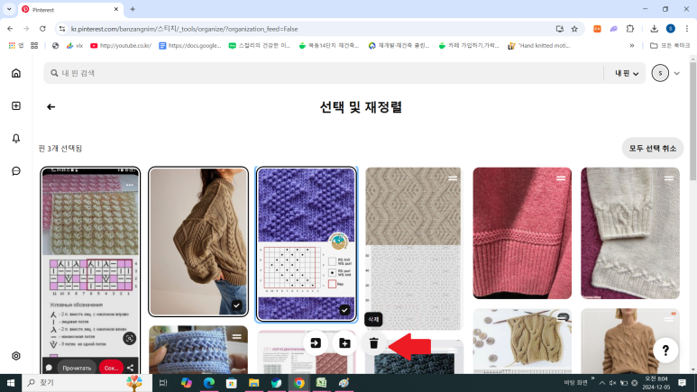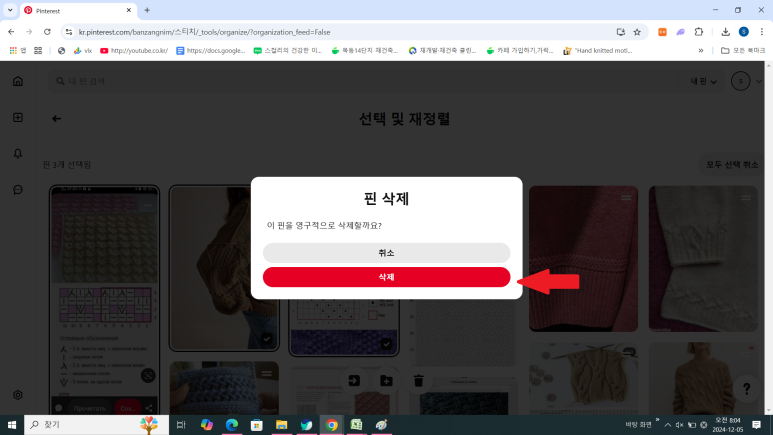 저는 3개의 핀을 삭제하려고 해요.