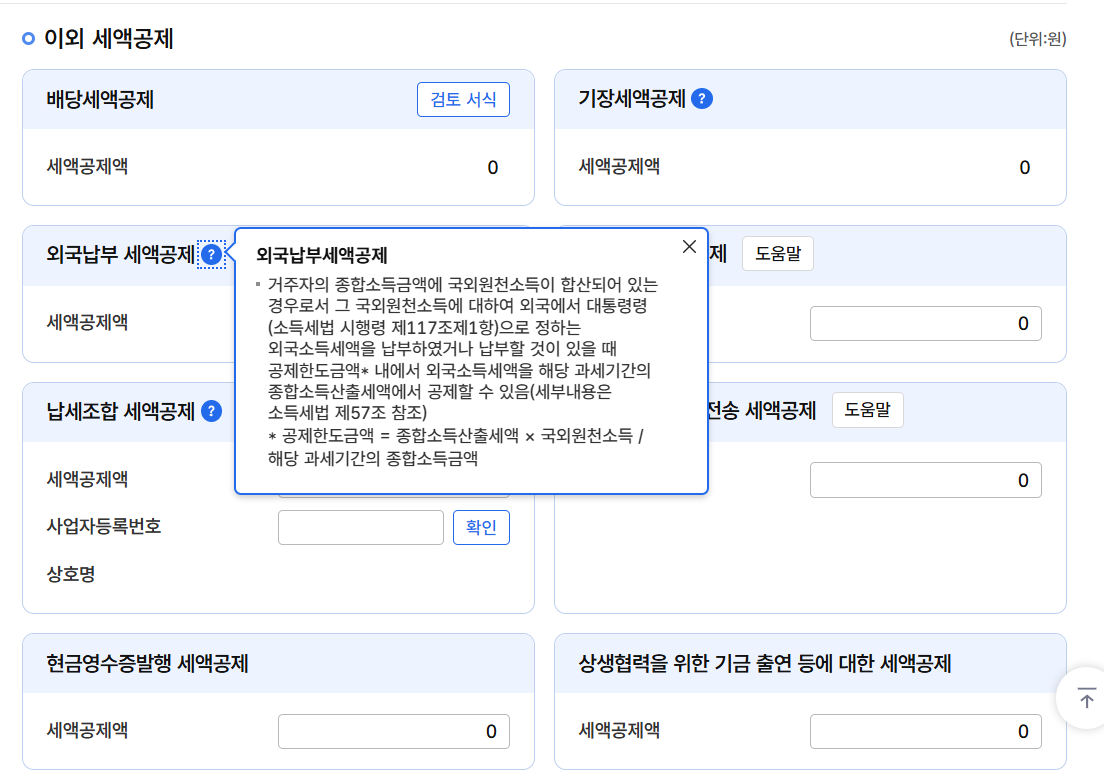 미국 주식 배당금을 받을 때 미국에 납부한 세액도 공제가 가능합니다.