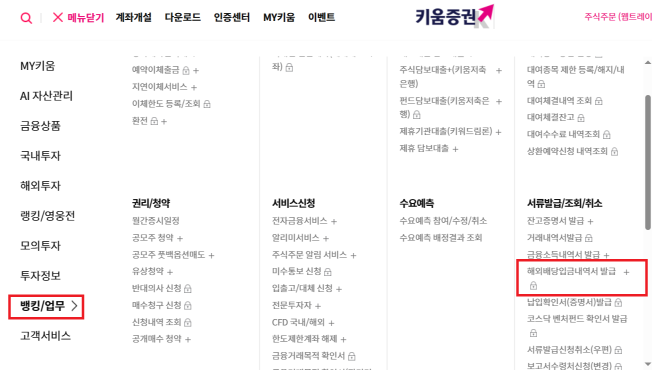 미래에셋과 키움증권에서 외국납부세액영수증을 받아보겠습니다.